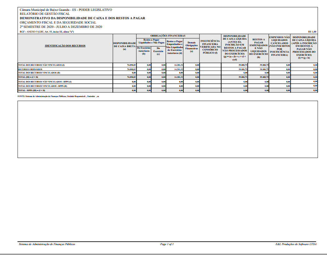 Relatório de Gestão Fiscal (RGF) referente ao segundo semestre de 2020